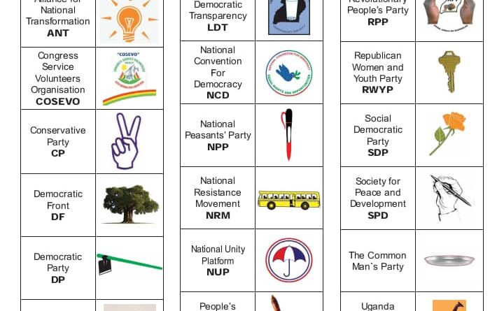 Among the parties, the National Resistance Movement (NRM) will appear with the yellow bus, the National Unity Platform (NUP) with the umbrella, and the Uganda People’s Congress (UPC) with the raised hand.