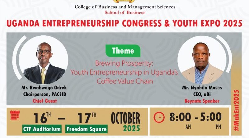 Uganda’s youth entrepreneurship scene is set to shine at the 3rd Uganda Entrepreneurship Congress & 9th Annual Students’ Expo, themed “Brewing Prosperity: Youth Entrepreneurship in Uganda’s Coffee Value Chain.” The event, held at Makerere University on October 16–17, will gather young innovators, entrepreneurs, investors, and policymakers to explore opportunities in Uganda’s coffee sector.