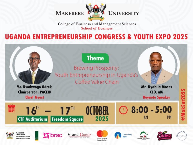 Uganda’s youth entrepreneurship scene is set to shine at the 3rd Uganda Entrepreneurship Congress & 9th Annual Students’ Expo, themed “Brewing Prosperity: Youth Entrepreneurship in Uganda’s Coffee Value Chain.” The event, held at Makerere University on October 16–17, will gather young innovators, entrepreneurs, investors, and policymakers to explore opportunities in Uganda’s coffee sector.