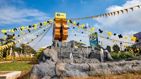 The new roundabout is dominated by a sculptural arrangement of interlocking cog wheels — an intentional nod to Jinja’s history as Uganda’s industrial hub — with the largest gear housing a circular digital display. At the launch the structure was dressed in yellow-and-black bunting and balloons, and large letters that spell out “JINJA CITY” form a foreground welcome for drivers and pedestrians. MTN described the installation as a “symbol of movement, connection, and progress.”