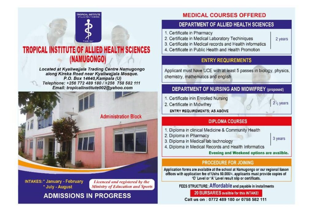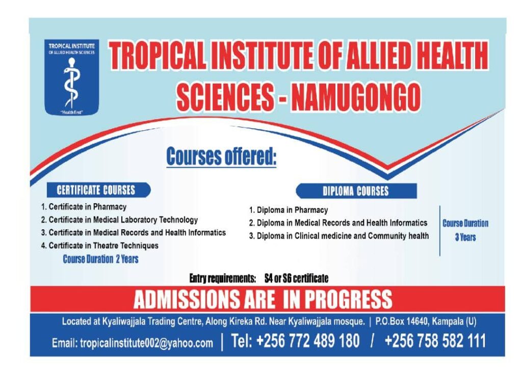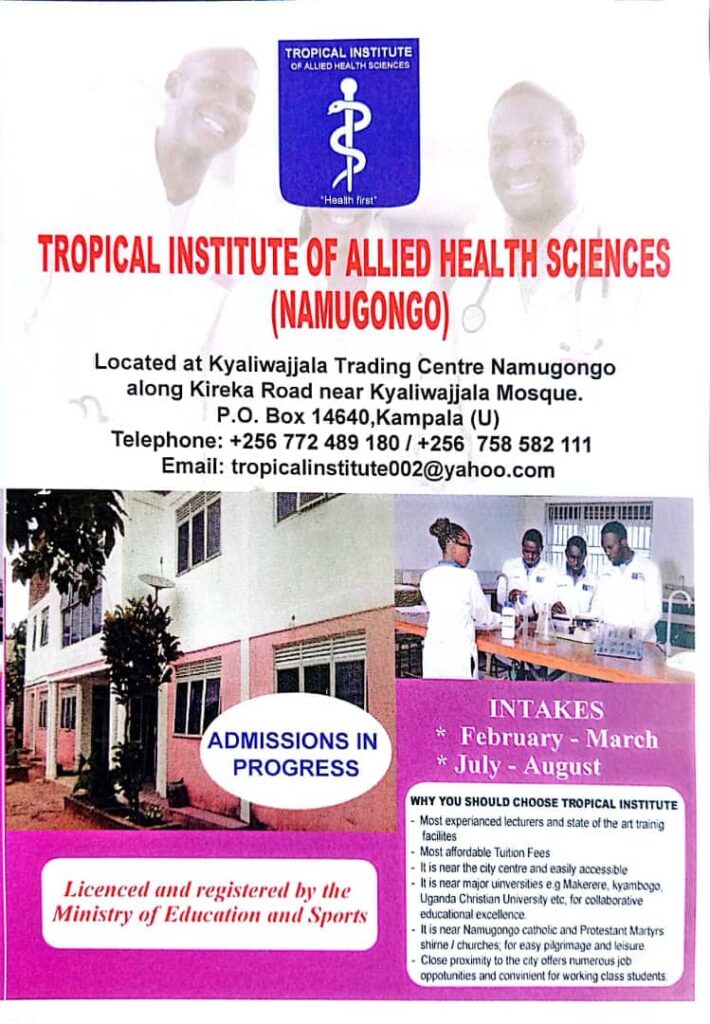 📞 Contact TIHS today: Telephone:+256772 489 180,+256758 582 111/Email: tropical institute002@yahoo.com